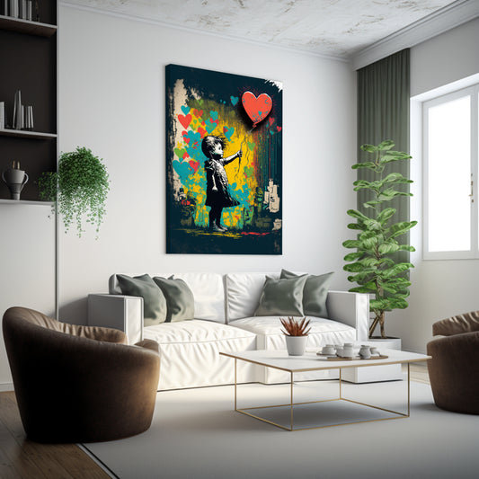 Graffiti Street Art Leinwandbild XXL für Wohnzimmer oder Schlafzimmer im Stil von Banksy